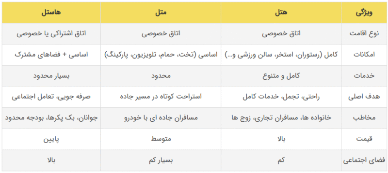 اما دنیای اقامتگاه ها بسیار گسترده و متنوع است و اصطلاحاتی مانند هتل، متل و هاستل ممکن است باعث سردرگمی مسافران شود.