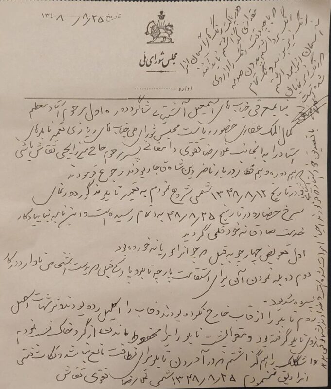 «تاریخ ۲۵/‌۰۸/‌۱۳۴۸‬ مجلس شورای ملی، اداره……